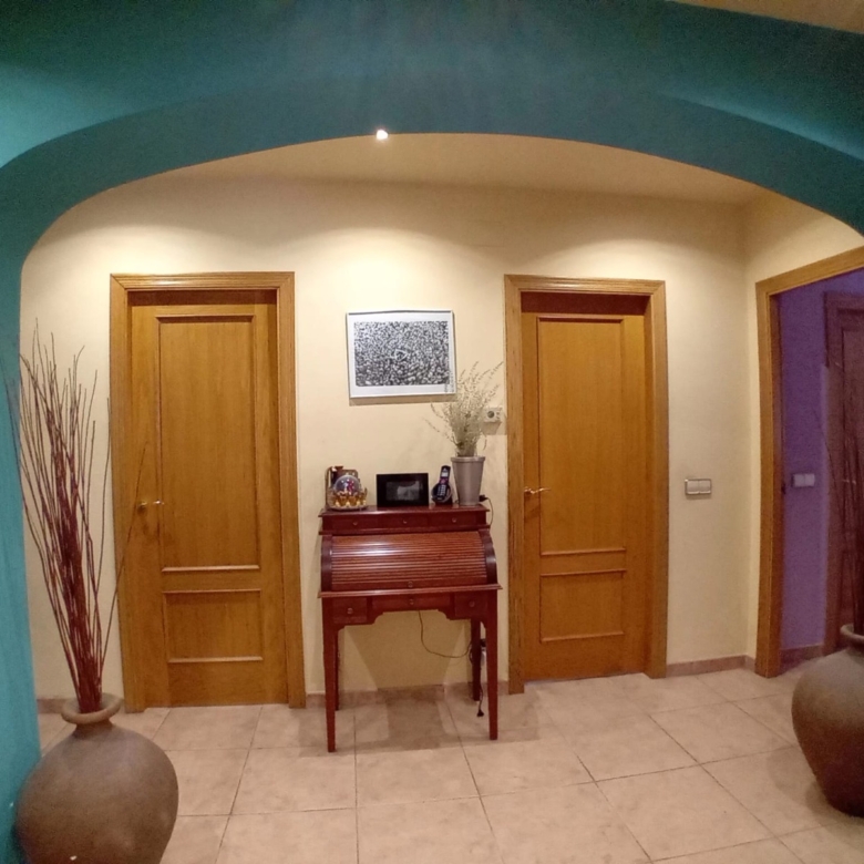 Consta de una vivienda en planta baja de 145m2, amplio vestíbulo con armario empotrado y acceso por unas escaleras al garaje, cocina office, salón comedor de unos 28m2, ambos con salida al porche, 3 habitaciones dobles, todas con salida a la terraza y armario empotrado, (1 de ellas es suite con baño completo con ducha y ventana), un segundo baño completo con bañera ovalada y ventana. Toda la casa es exterior, con muchísima luz natural y preciosas vistas desde cualquier estancia. Además de un estupendo porche y una terraza espectacular, garaje de 147m2 en planta sótano, (ideal para hacer una sala de juegos, una zona de música o de relax), cuarto de la lavadora y zona ajardinada, ventanas de aluminio con doble vidrio, puertas de roble, suelo de gres, puerta blindada. La parcela tiene 1055m2, espacio suficiente para hacer una piscina rodeada de un magnífico jardín para disfrutar en familia.